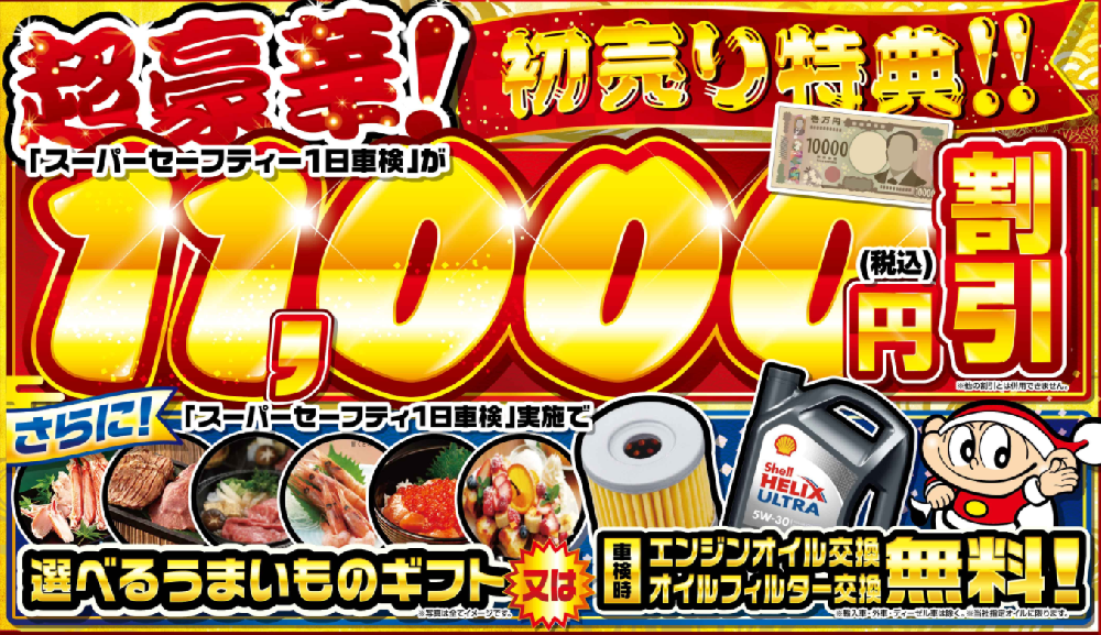 当店一番人気の「スーパーセーフティー1日車検」をご予約いただくと…
