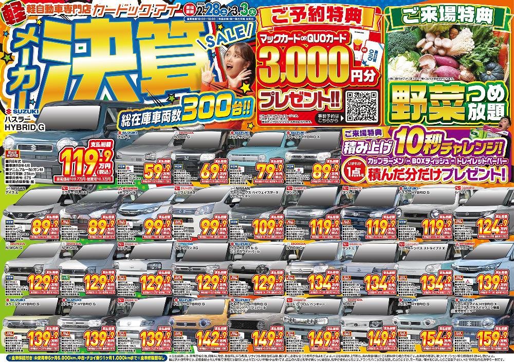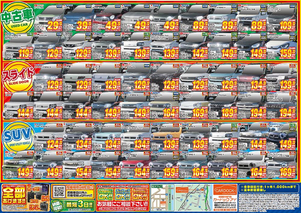 【最新チラシ裏面!】軽未使用車専門店カードック・アイ