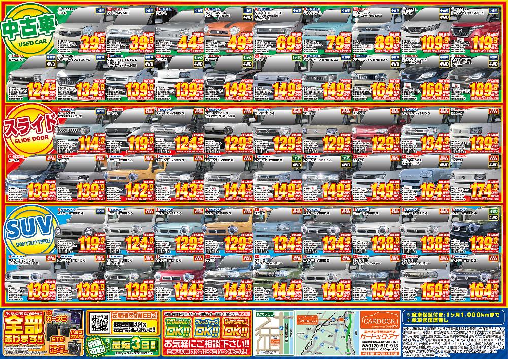 【最新チラシ裏面!】軽未使用車専門店カードック・アイ