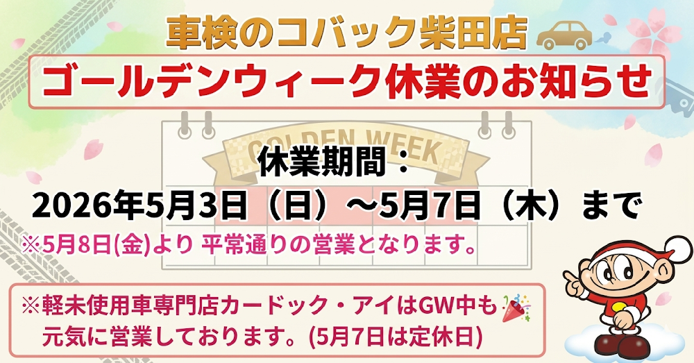 【総在庫300台!!】GWは家族みんなでクルマ選び&お祭りへ! 軽未使用車専門店カードックアイ『ゴールデンウィークフェア』開催!